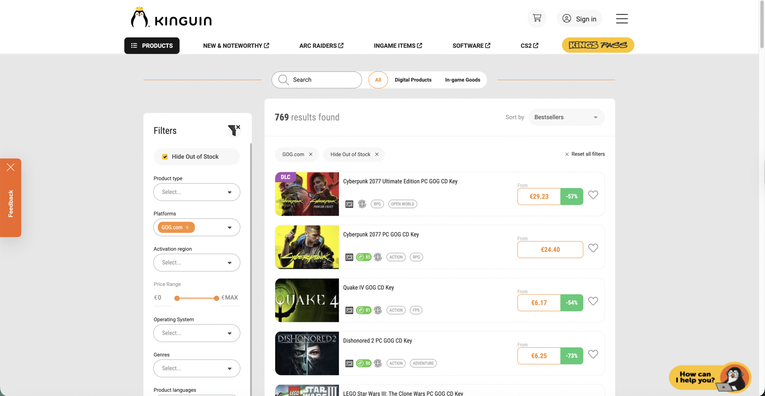 Kinguin est en concurrence avec d’autres plates-formes du marché gris qui revendent également des clés numériques à prix réduit. Lorsque vous comparez Kinguin à G2A, à CDKeys et à des sites similaires, vous constaterez principalement des différences dans les prix, la réputation et la manière dont ils gèrent les litiges avec les acheteurs.