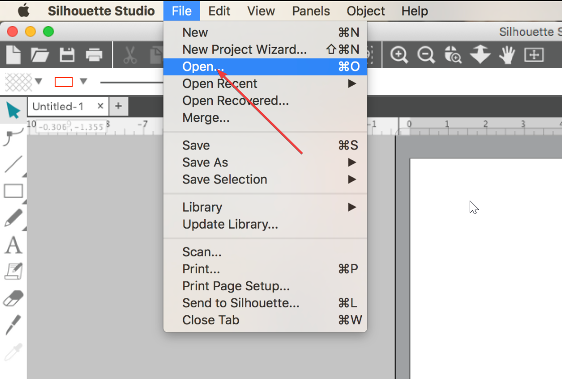 Faites glisser le SVG dans Silhouette Studio ou utilisez Fichier → Ouvrir. Studio lit les fichiers SVG uniquement lorsque vous utilisez Designer Edition ou une version ultérieure.