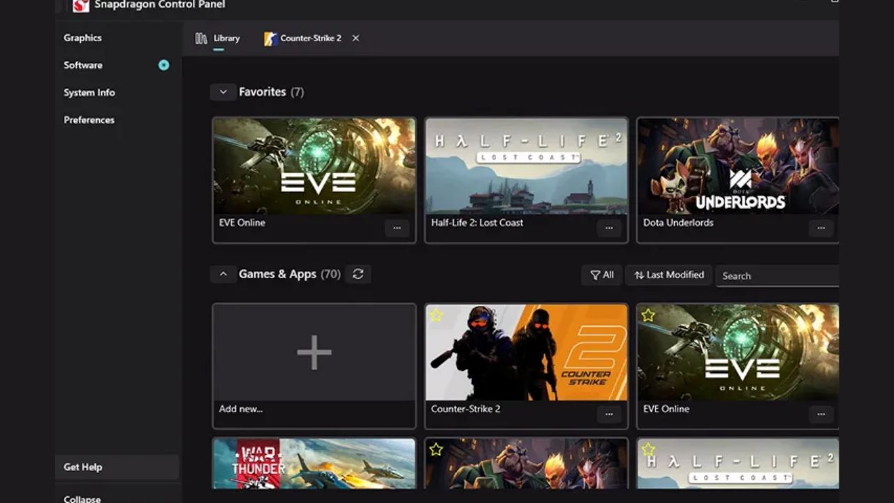 Qualcomm a introduit le Panneau de configuration Snapdragon. Il s’agit essentiellement d’un centre de contrôle avec un seul clic pour les graphiques.