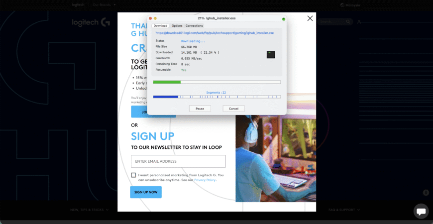 Téléchargez le logiciel de jeu Logitech ou G Hub pour Windows.