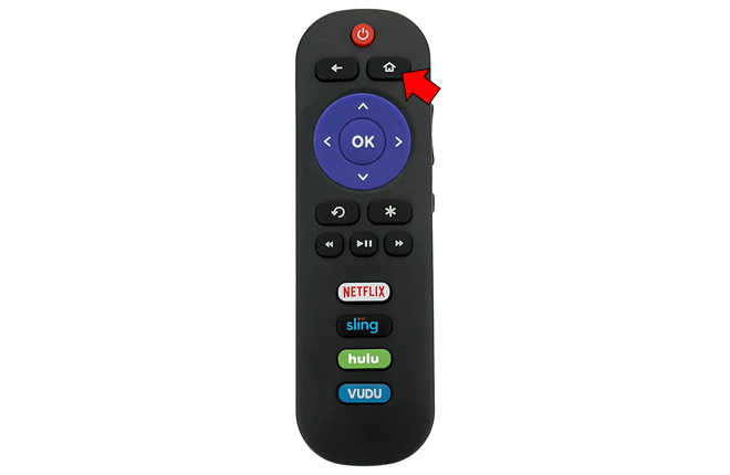 Pour Roku TV, notre bouton de prédilection sera le bouton Accueil. Il ressemble à une petite maison et vous pouvez le trouver dans le coin supérieur droit de votre télécommande, juste en dessous du bouton d’alimentation.