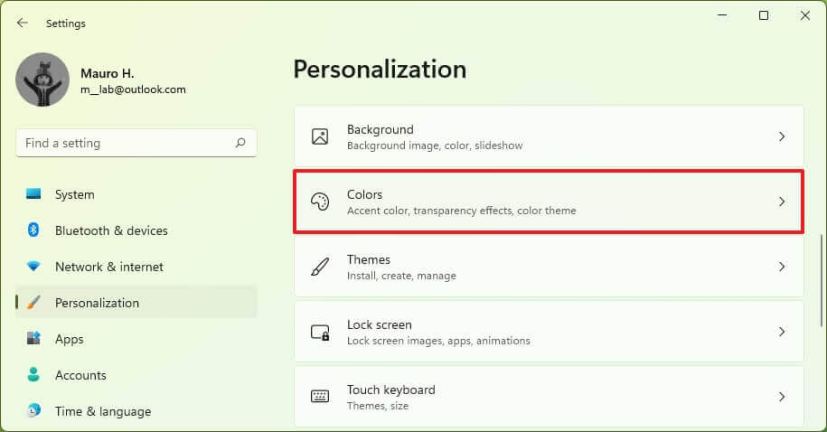 Sélectionnez la couleur d’accentuation pour le menu Démarrer et la barre des tâches de Windows 11.