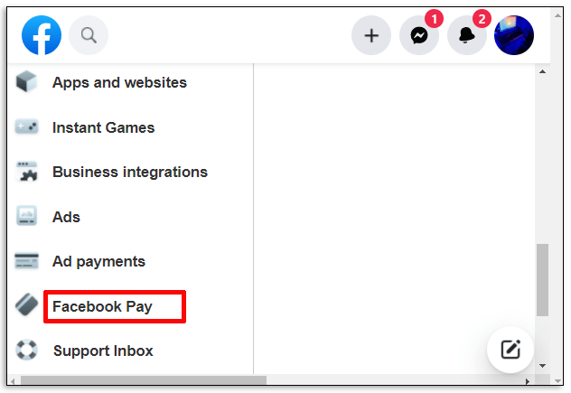 Depuis le menu à gauche, CL cochez”Facebook Pay.”