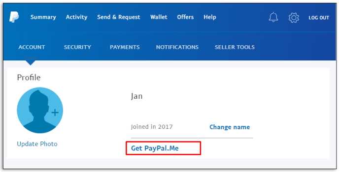 Juste en dessous de votre nom dans la section”Profil”, vous devriez voir le lien”Get PayPal.Me”.