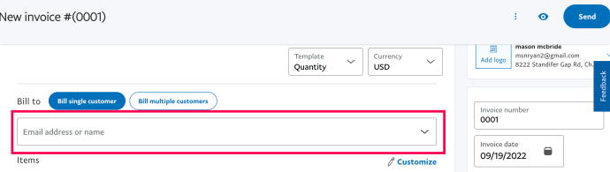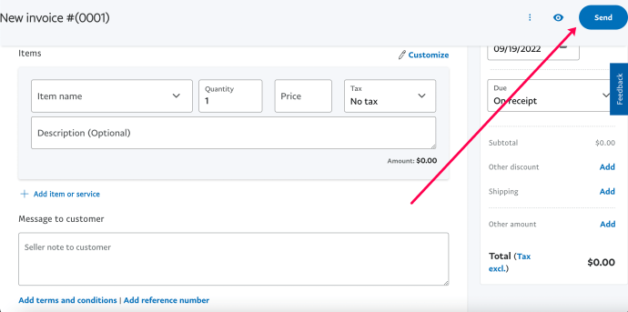Après avoir rempli les détails de la facture, cliquez sur Envoyer dans le coin supérieur droit pour envoyer votre facture.
