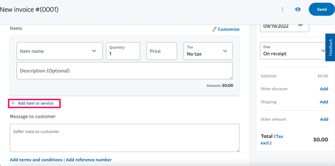 Remplissez chaque élément inclus dans votre facture. Si vous avez besoin de plus d’espaces, cliquez sur Ajouter un article ou un service.
