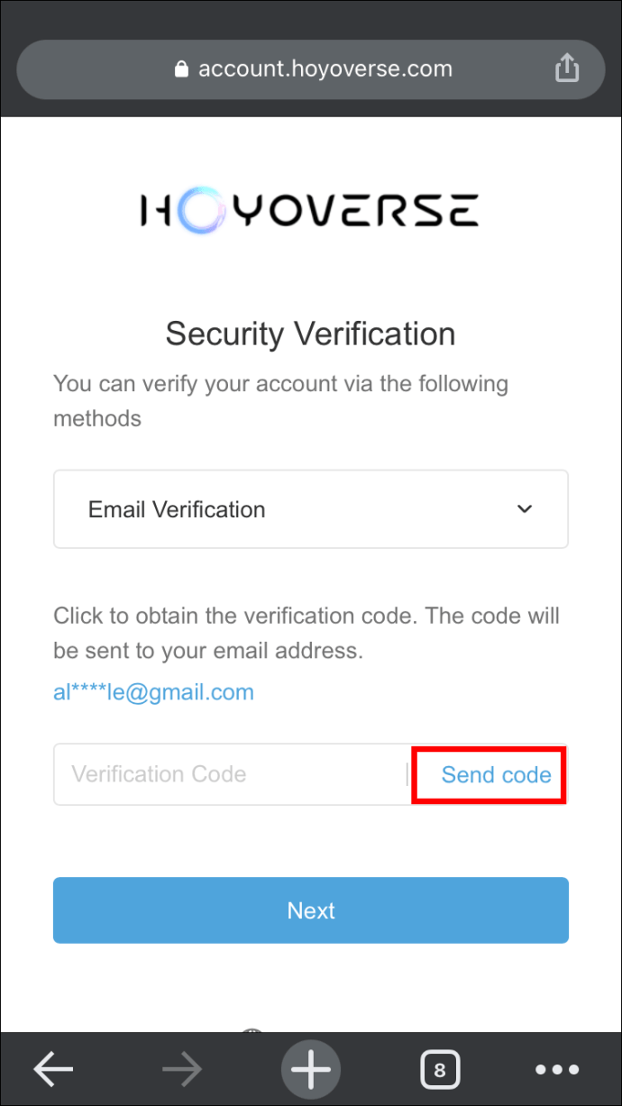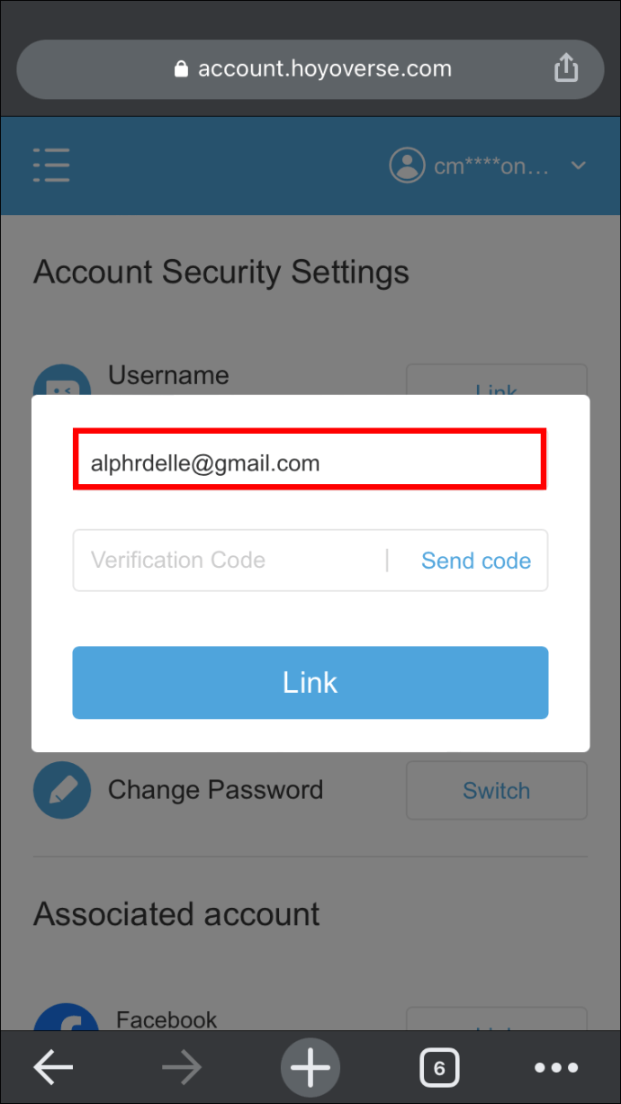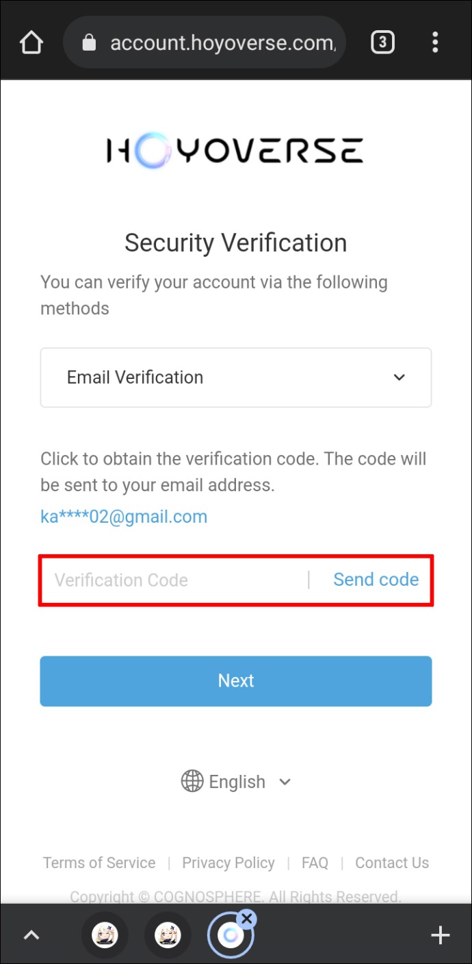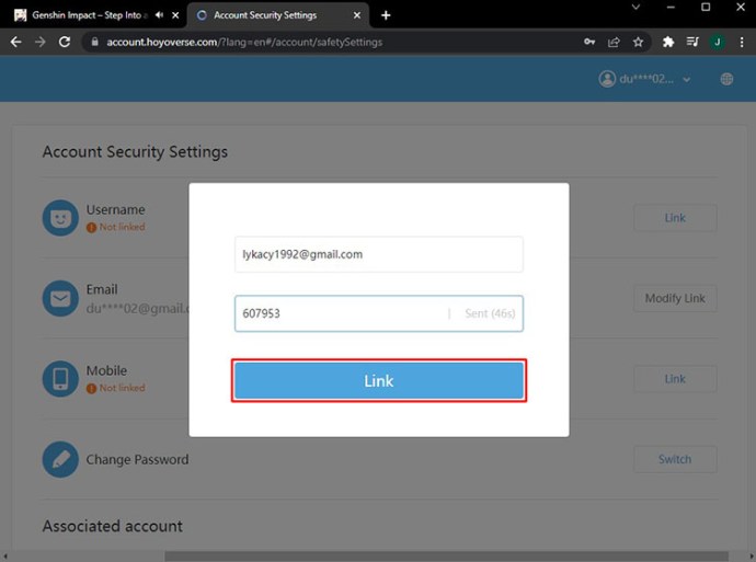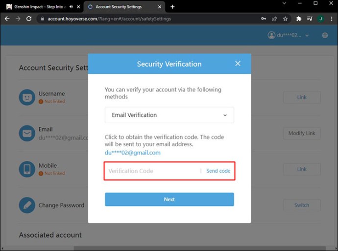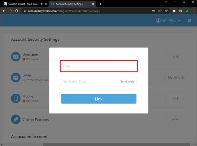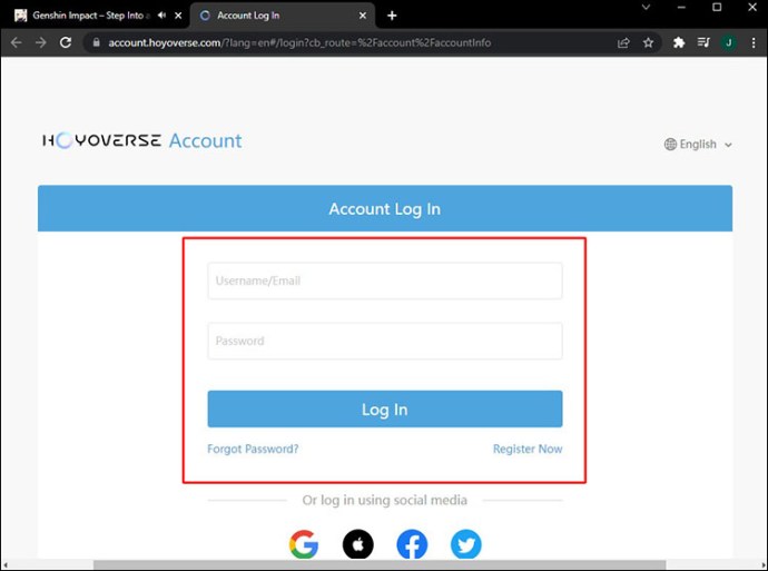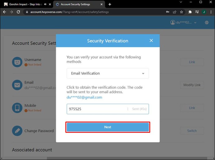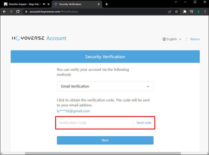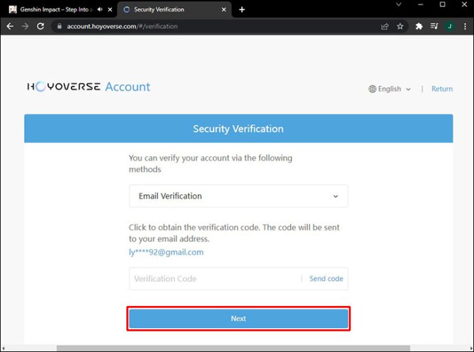 Jelentkezzen be Genshin Impact-fiókjába az új e-mail cím használatával a teszteléshez.