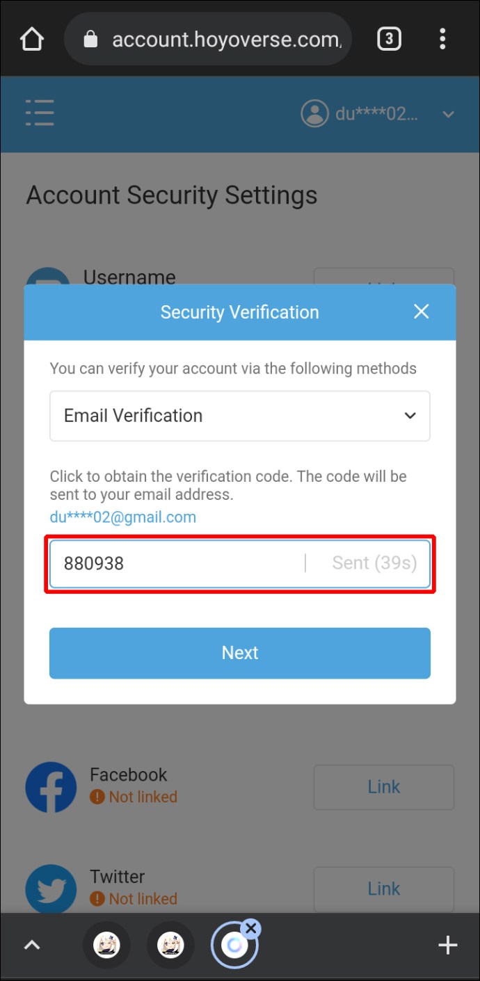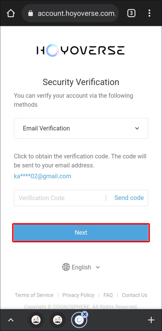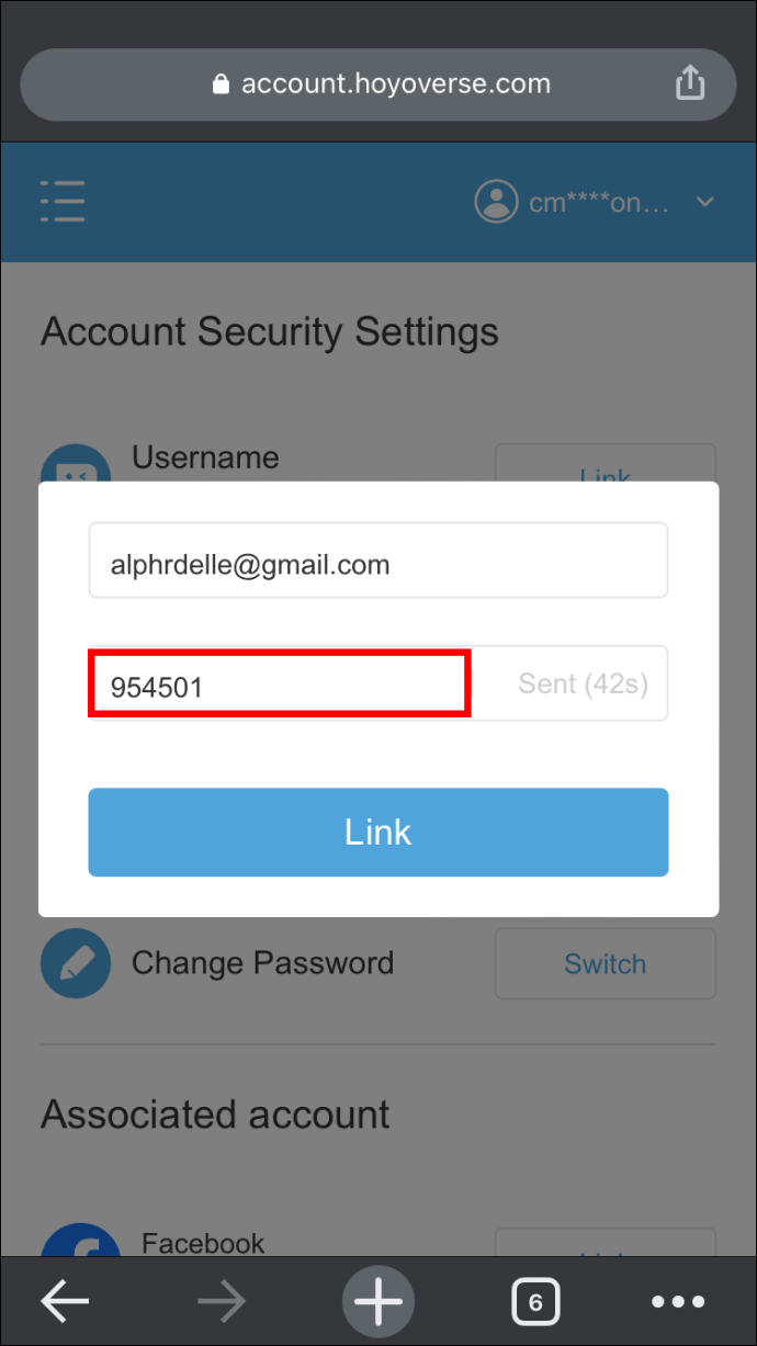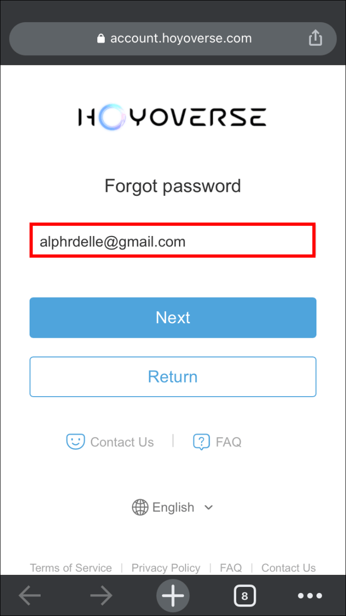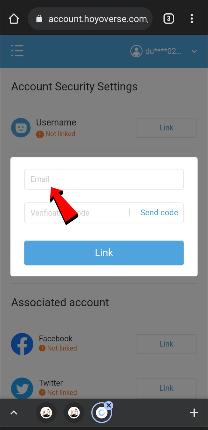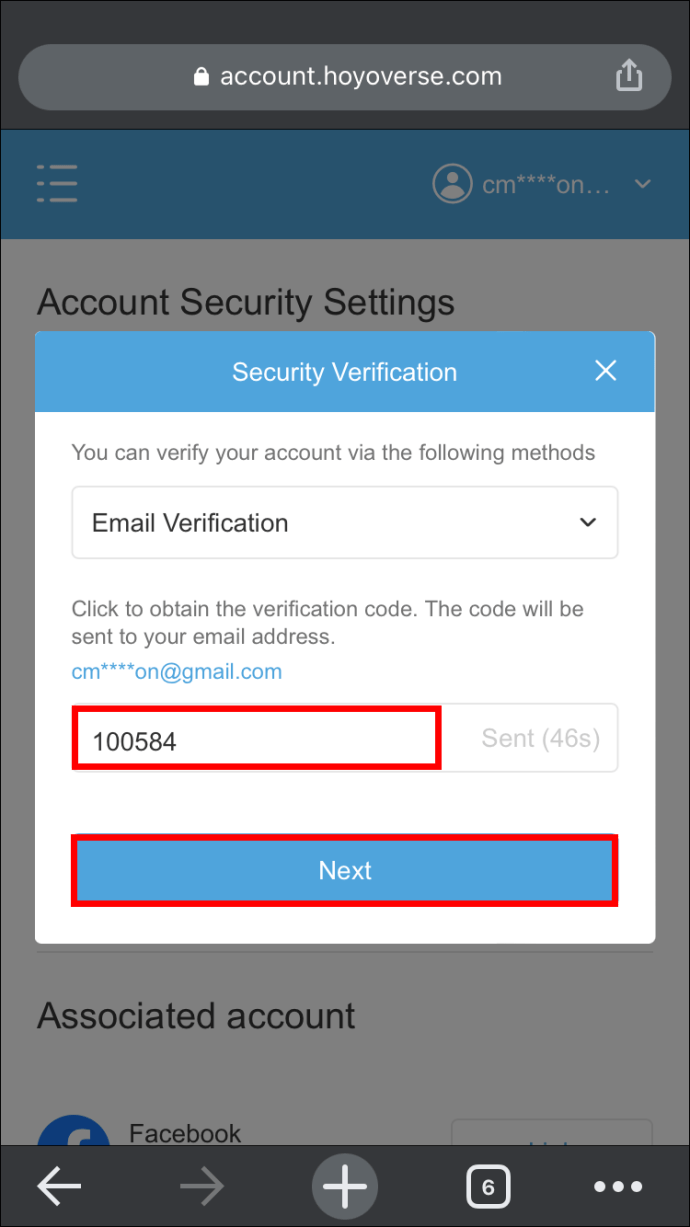 Jelentkezzen be Genshin Impact-fiókjába az új e-mail cím használatával a teszteléshez.