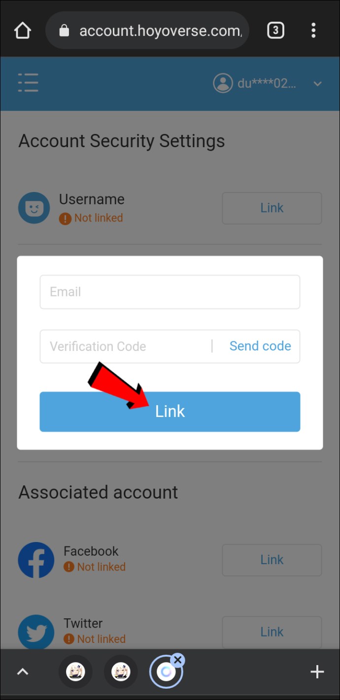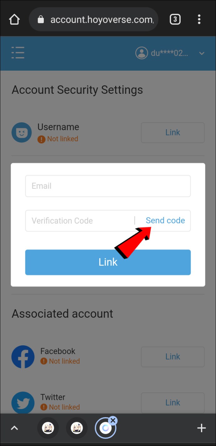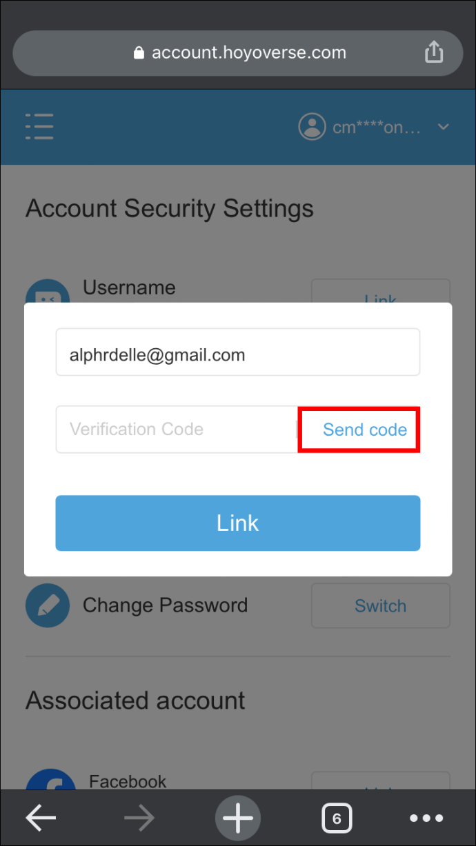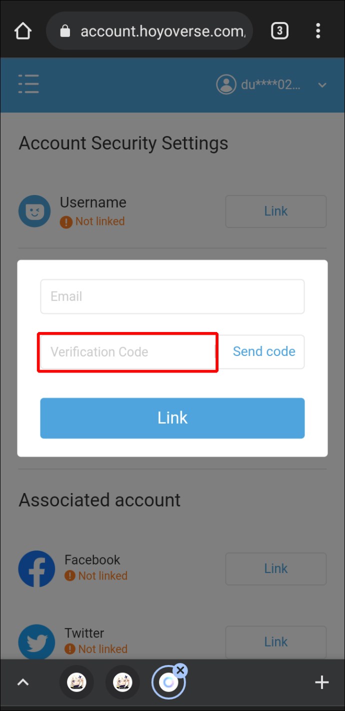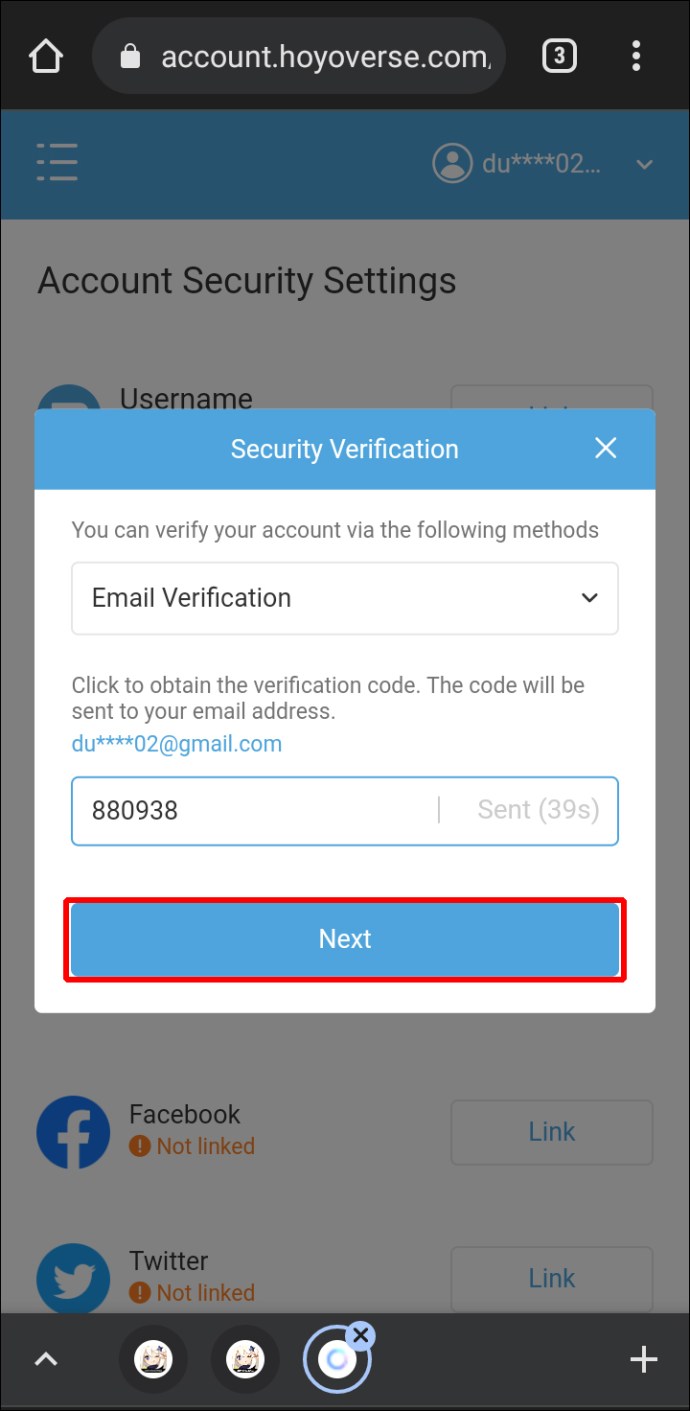 Jelentkezzen be Genshin Impact-fiókjába az új e-mail cím használatával a teszteléshez.