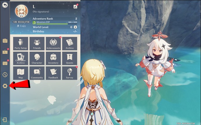 A Genshin Impact for PC-n nyissa meg a Paimon menüt az Esc