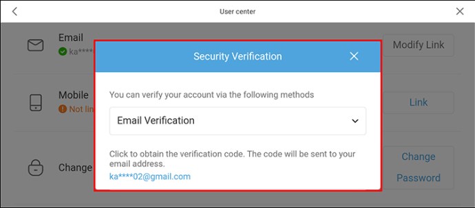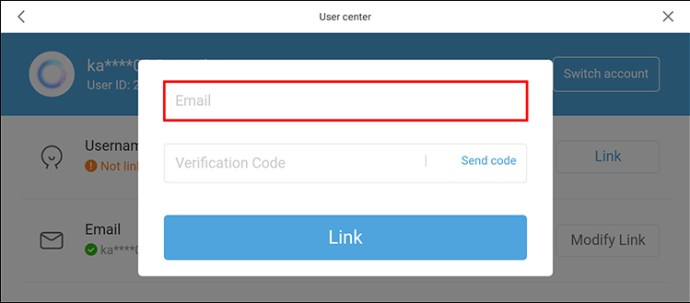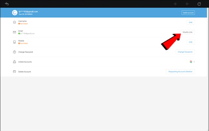 Indítsa el az e-mail módosítási folyamatot a Hivatkozás módosítása gomb.