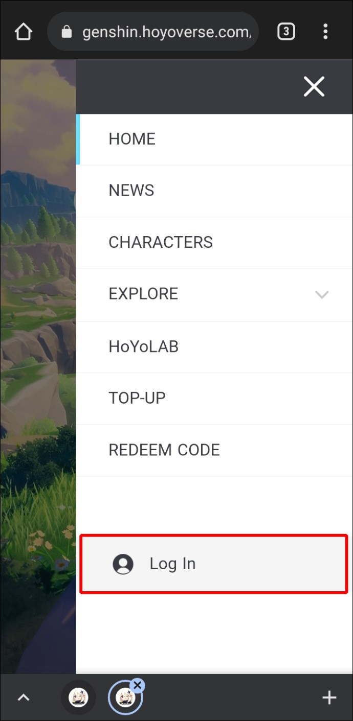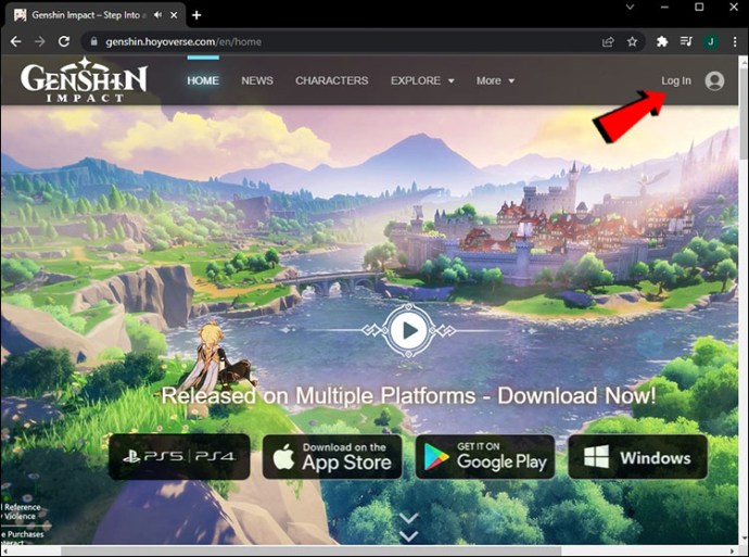 Keresse fel a hivatalos Genshin Impact webhelyet Android-eszközén.