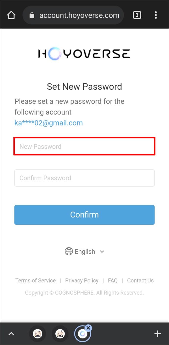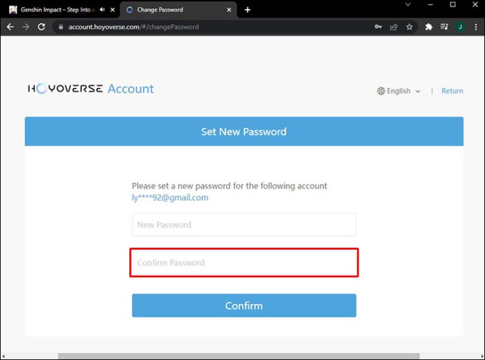 Hozzon létre új jelszót Genshin Impact-fiókjához.