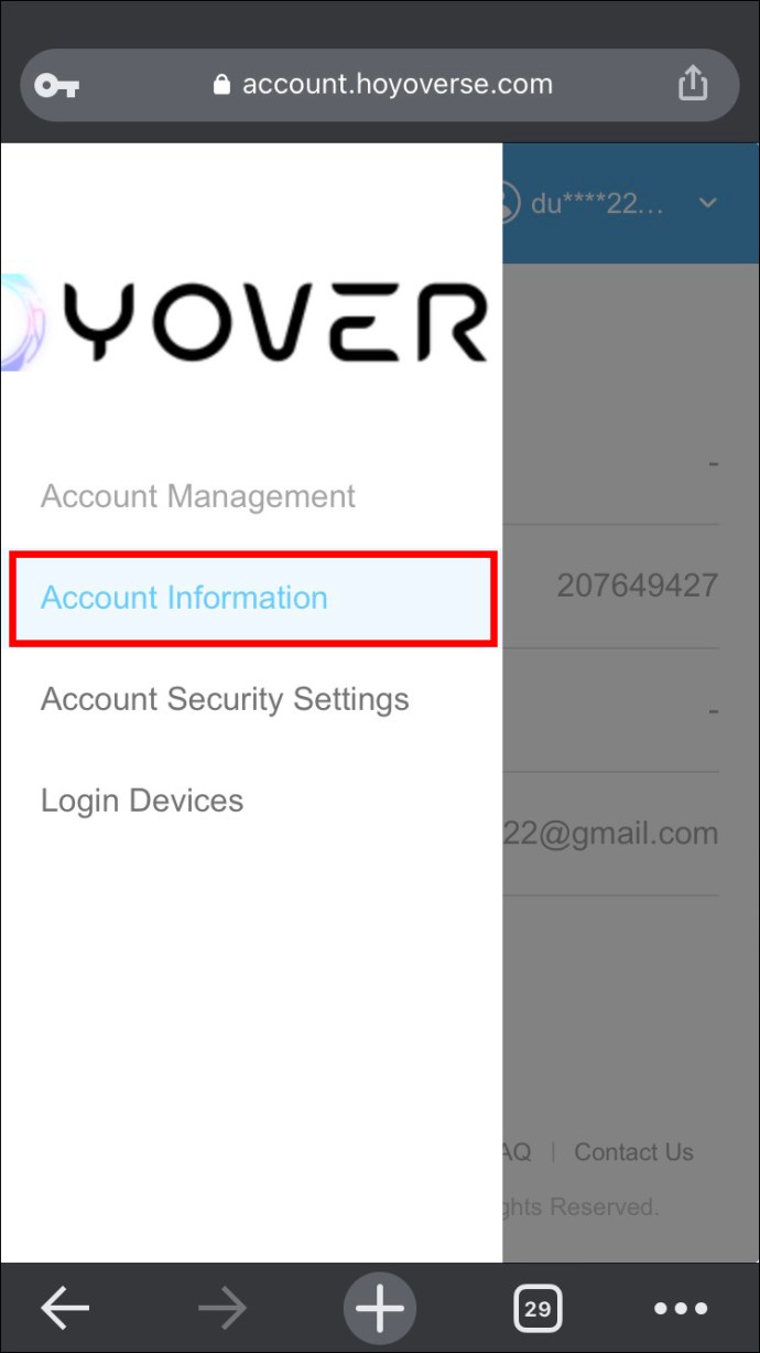 Az iPhone lehetővé teszi a a Genshin Impact hivatalos webhely mobil verziója az e-mail címek és jelszavak megváltoztatásához. A Felhasználói központot a játék iOS verziójával is elérheti, mivel ez egy univerzális funkció a játékban.