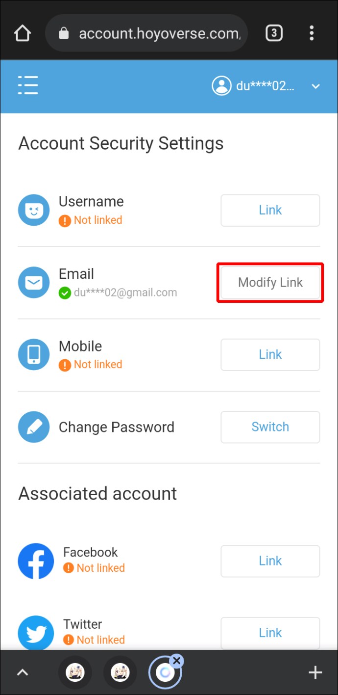 A Genshin Impact e-mail vagy jelszó módosítása Android rendszeren