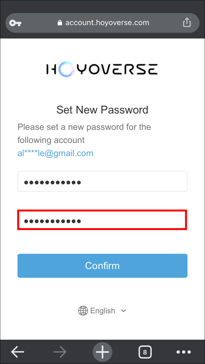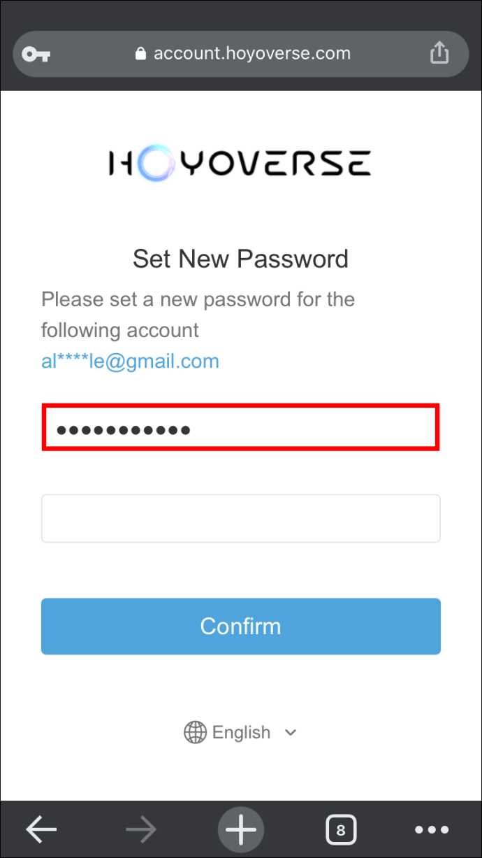 Létrehozás új jelszót a Genshin Impact-fiókjához.