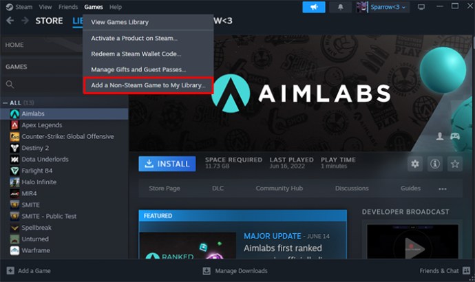 Kattintson a „Nem Steam játék hozzáadása a könyvtáramhoz” lehetőségre.