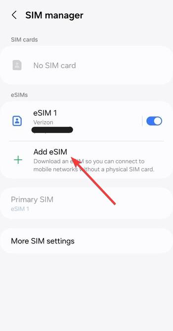 A Verizon eSIM QR-kódot küld e-mailben, vagy megjeleníti azt a My Verizon-fiókjában. Nyissa meg telefonja Mobil-vagy Mobiladat-beállításait, válassza az eSIM hozzáadása lehetőséget, és szkennelje be a kódot.