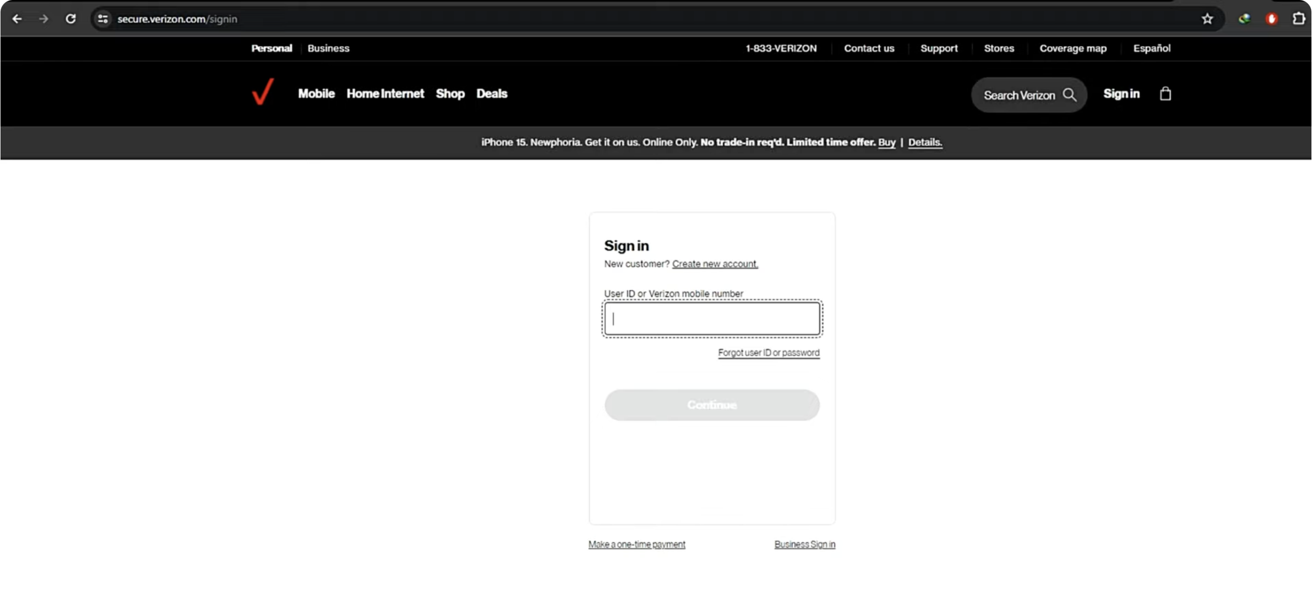 Kérjen online: Keresse fel a Verizon hivatalos webhelyét.