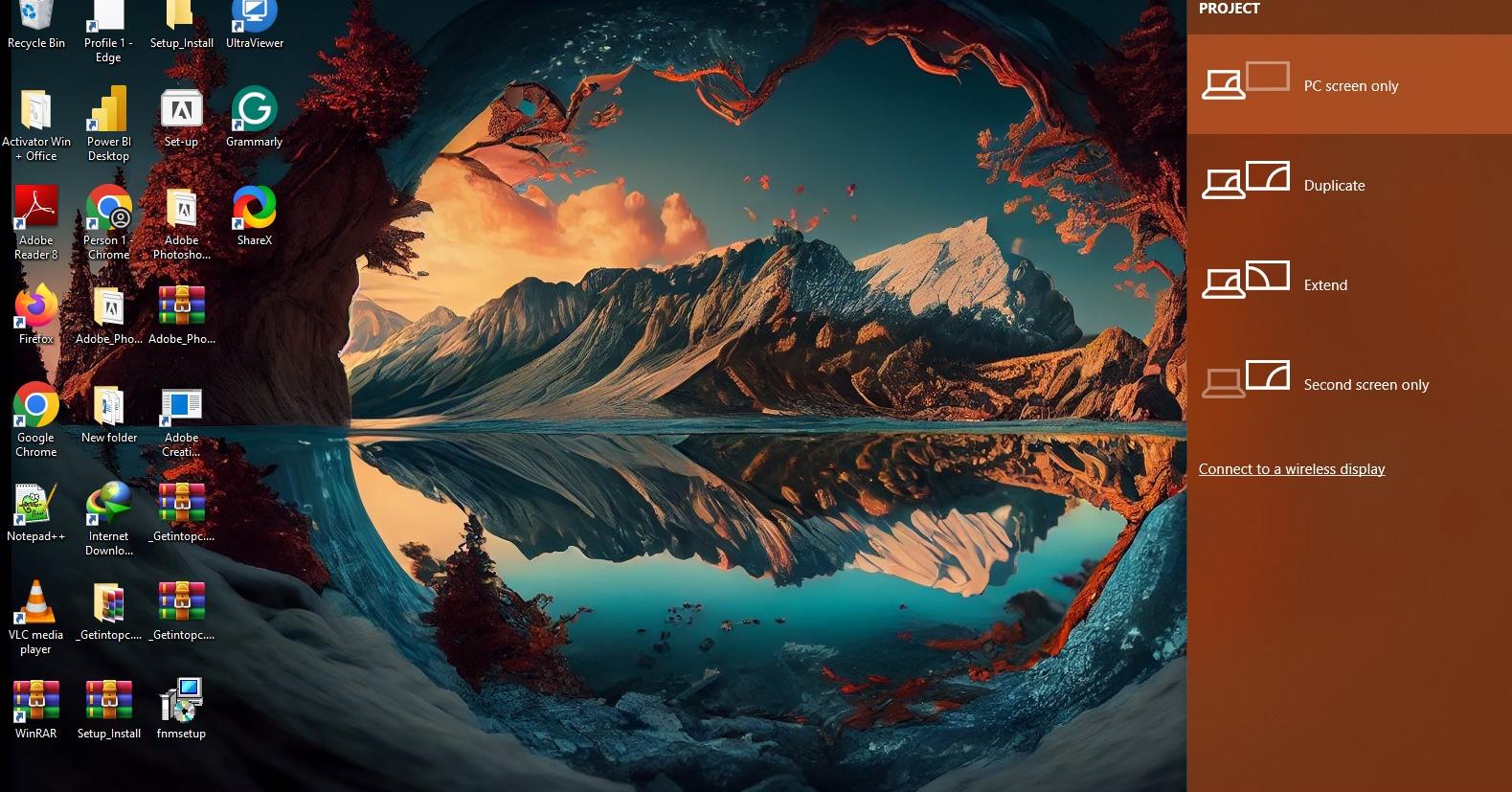 Most nyomja meg a Windows + P billentyűkombinációt a vetítési lehetőségek megnyitásához, és válassza a Másolás, Kiterjesztés vagy Csak második képernyő lehetőséget, attól függően, hogy a kijelzőt hogyan kívánja használni.