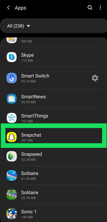 Ketuk Batas Aplikasi dan temukan Snapchat dan Kamera.