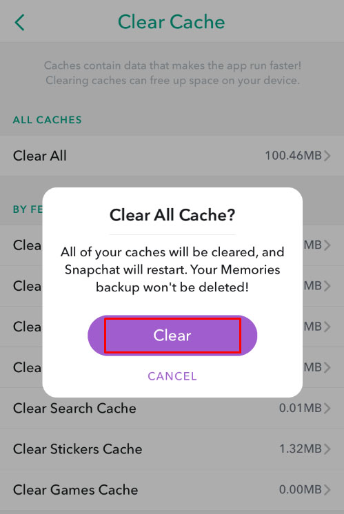 Dengan menghapus cache Snapchat, Anda akan mengosongkan penyimpanan ponsel secara signifikan. Anda mungkin bertanya-tanya apakah ini akan menghapus semua jepretan, pesan, atau kenangan Anda. Jangan khawatir – membersihkan cache Snapchat akan membuatnya tetap utuh. Selain itu, foto atau video yang Anda simpan dari Snapchat ke galeri ponsel Anda juga akan aman.