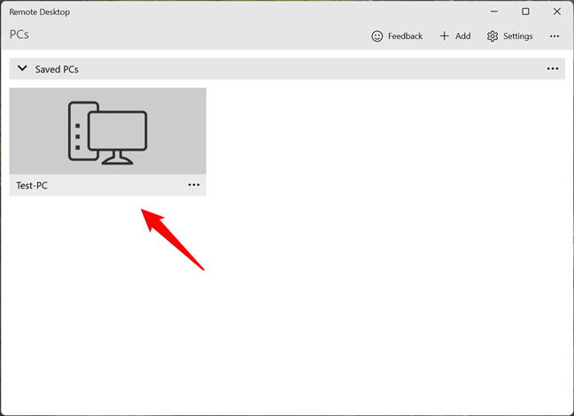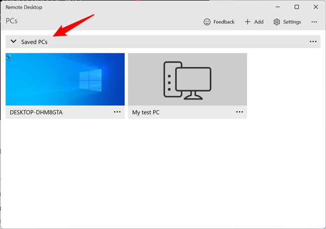 Ketika Anda selesai mengatur semuanya, klik atau ketuk Simpan. Kemudian, Anda melihat komputer jarak jauh Anda ditampilkan sebagai opsi di Grup pilihan Anda. Jika Anda tidak menentukan Grup, defaultnya adalah PC Tersimpan.