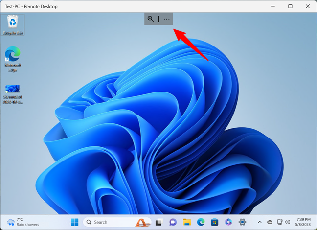 Saat Anda terhubung ke komputer atau perangkat Windows jarak jauh, di bagian atas jendela , Anda mendapatkan dua tombol: Zoom dan Lainnya.