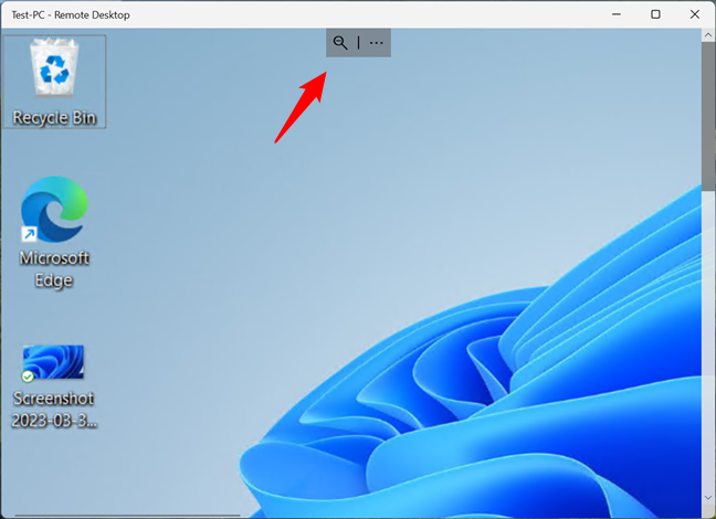 Mengklik atau mengetuk Zoom akan memperbesar layar jarak jauh agar lebih mudah dibaca. Menekannya lagi akan memulihkan tampilan ke tampilan desktop jarak jauh penuh.