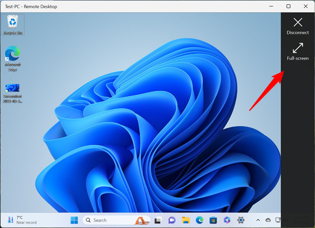 Putuskan atau alihkan ke layar penuh di koneksi desktop jarak jauh