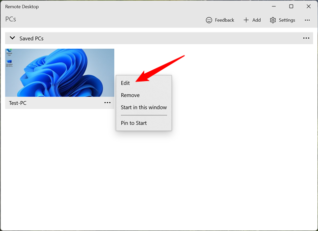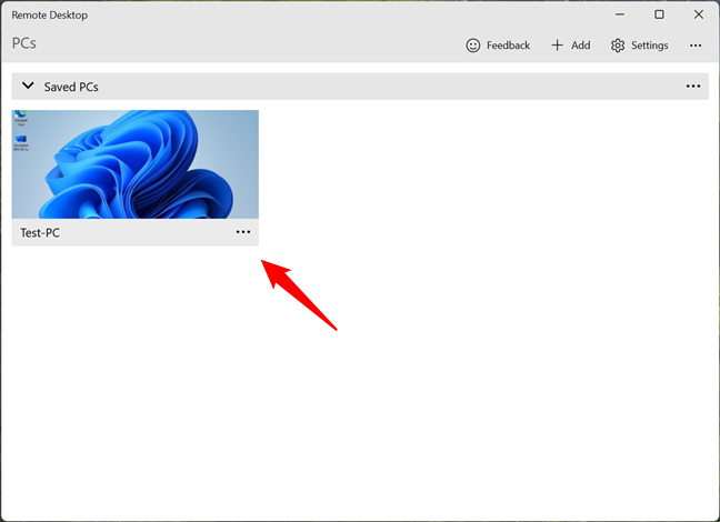 Jika Anda ingin mengubah pengaturan koneksi desktop jarak jauh setelah membuatnya, di dasbor klien Microsoft Remote Desktop, klik atau ketuk tombol tiga titik dari sudut kanan bawahnya.