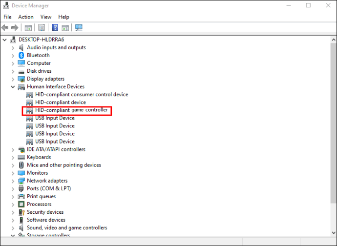 Pilih tab “Hardware” dan ketuk dua kali pada “pengontrol game yang kompatibel dengan HID.”