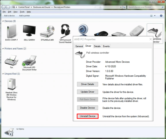 Beralih ke tab “Driver” dan ketuk “Uninstall Device.”
