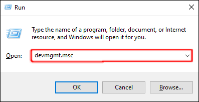 Ketik “devmgmt.msc”di kotak dan klik “Enter.”