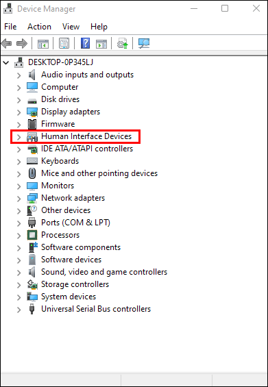 Dari “Device Manager”, pilih “ Perangkat Antarmuka Manusia.”