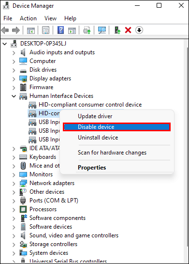 Klik kanan pada “pengontrol game yang sesuai dengan HID” dan pilih “Nonaktifkan perangkat.”