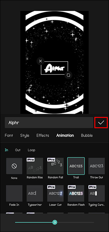 Pilih tombol “Check”untuk menambahkan teks dan animasi ke video Anda