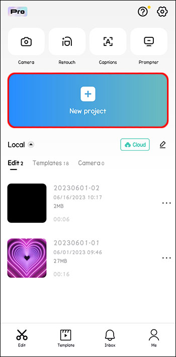 Ketuk “Proyek Baru”untuk membuat sesuatu yang baru.Tambahkan foto atau video yang ingin Anda kerjakan.