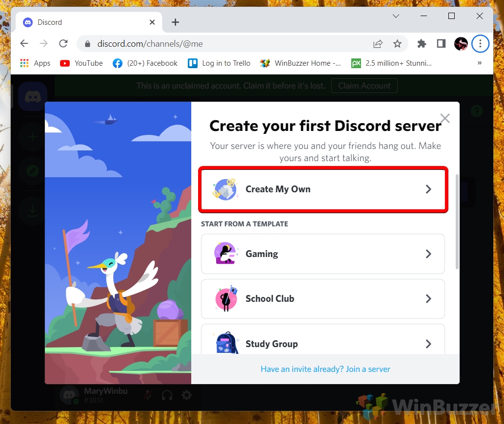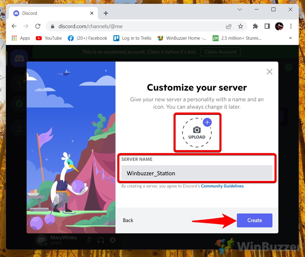 Pilih nama untuk server Discord Anda dan klik “Buat Server”