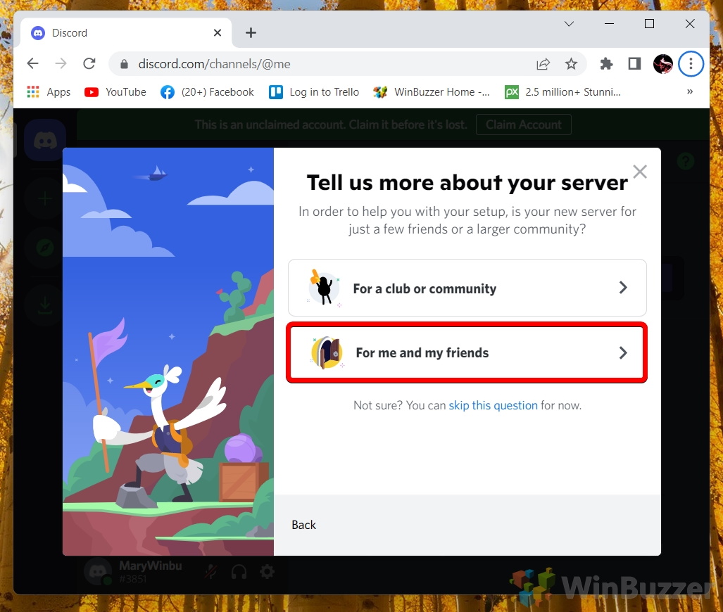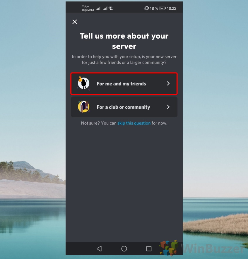 Saat Anda membuat server di Discord, Anda dapat memilih antara “Untuk klub atau komunitas” atau “Untuk saya dan teman saya”