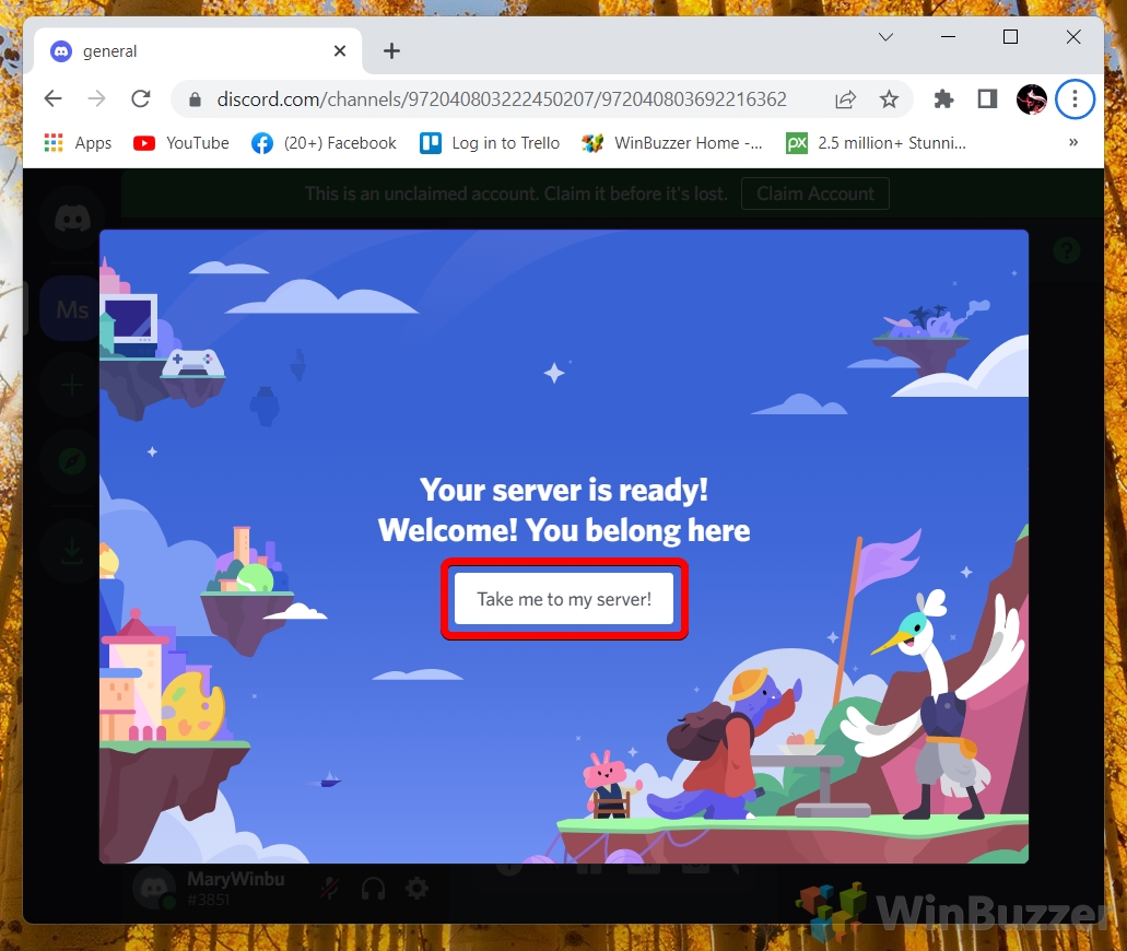 Setelah membuat server Discord Anda, klik “Bawa saya ke server saya!”