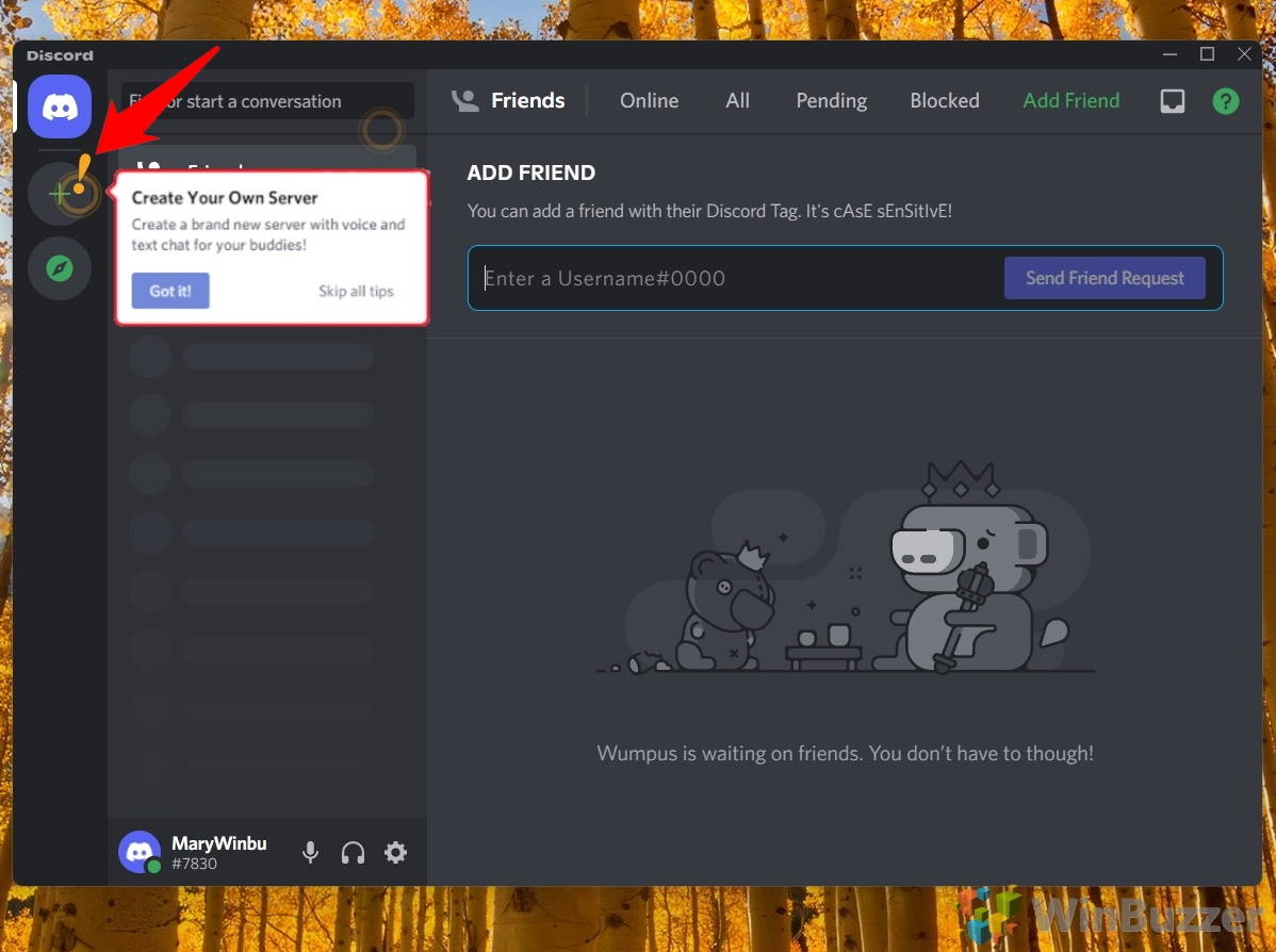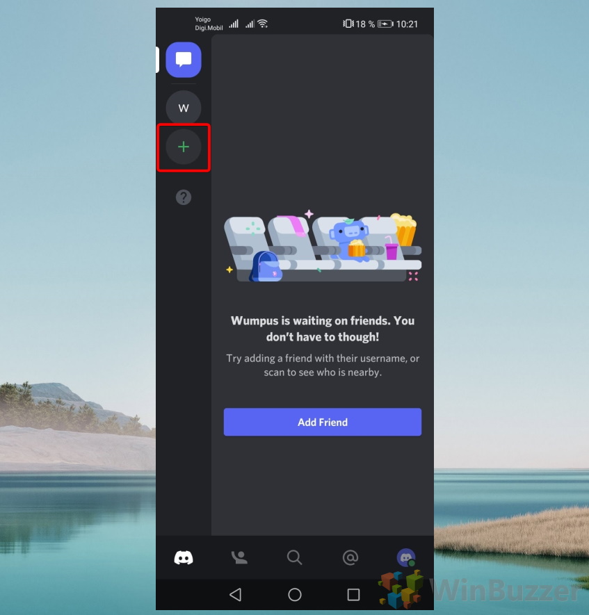 Klik tombol + untuk membuat server Discord