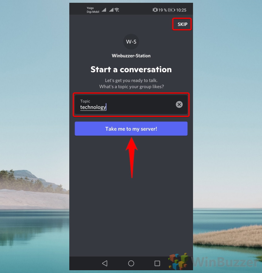 Pilih topik untuk server Discord Anda dan klik “Bawa saya ke server saya!”