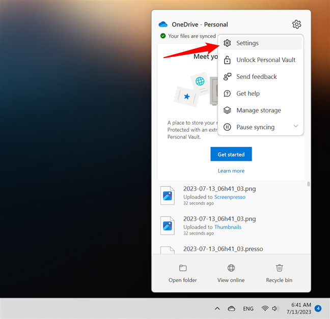 Di flyout OneDrive, klik atau ketuk”Bantuan & Pengaturan.”