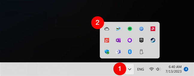 Jika Anda tidak melihat ikon OneDrive di baki sistem, klik atau ketuk ^ lalu ikon OneDrive.
