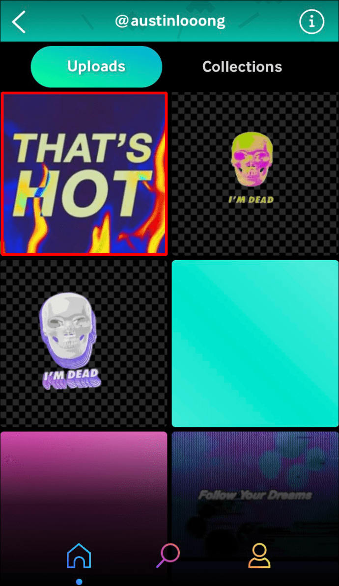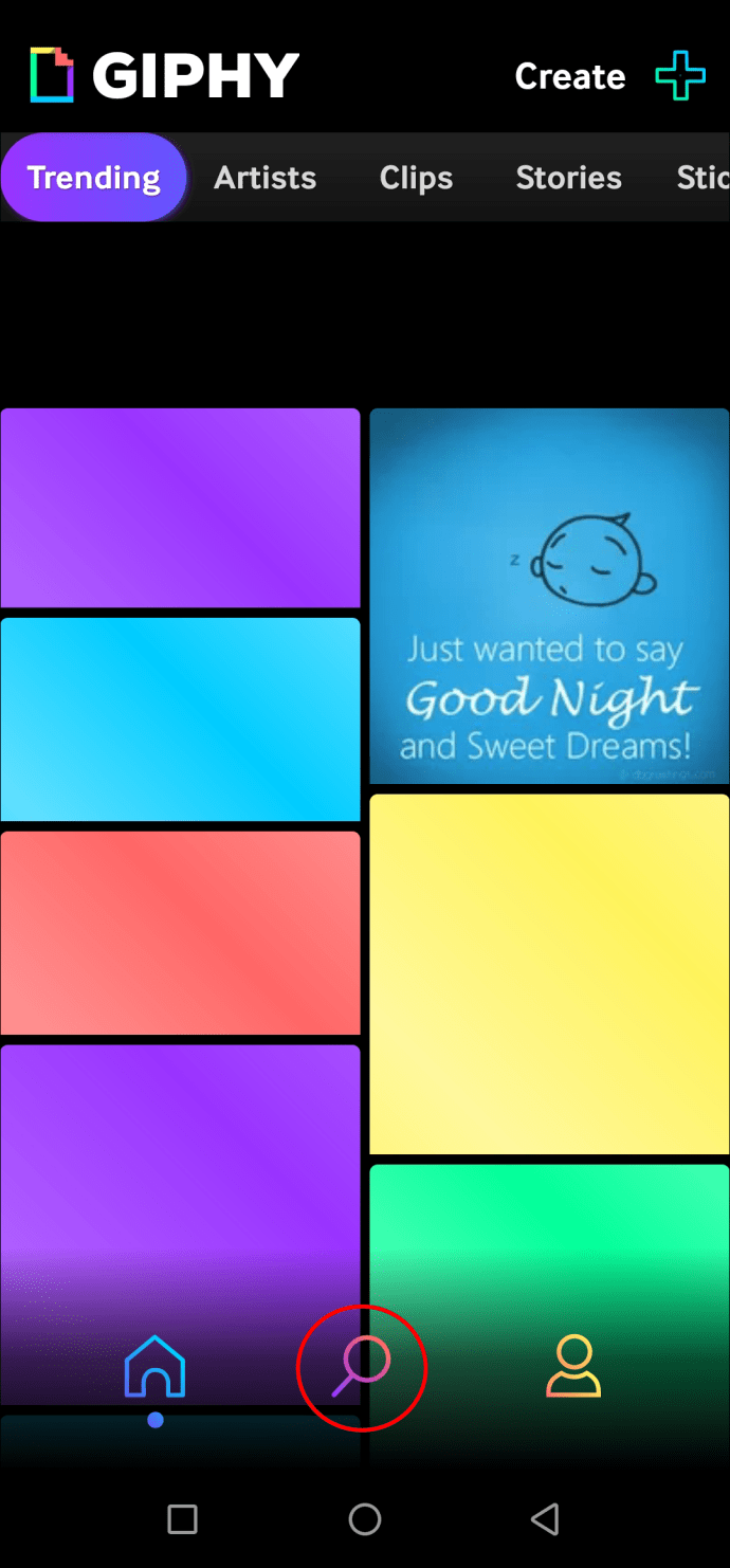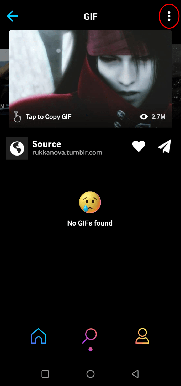 Gunakan kaca pembesar untuk mempersempit pencarian Anda, dan jelajahi file GIF yang paling Anda minati.Setelah Anda memilih GIF, Anda akan ingin digunakan sebagai wallpaper, ketuk tiga titik di sudut.