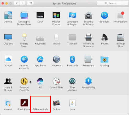 Dari file zip yang telah Anda unduh, instal yang bernama GIFPaperPrefs.Setelah diinstal, Anda akan menemukannya di folder System Preferences di mac Anda. Luncurkan dengan klik dua kali.