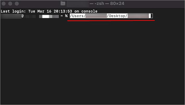 Tekan Command + Spasi untuk membuka Spotlight.Telusuri dan buka Terminal.Sekarang, seret dan letakkan file terkait di dalam jendela terminal. Terminal kemudian akan secara otomatis mengembalikan jalur yang tepat dari file yang dipilih. Sorot jalur ini, klik kanan padanya, dan Salin.