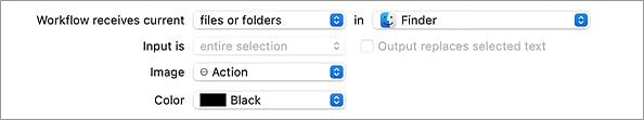 Kemudian, pada menu pita, atur Alur kerja menerima arus ke file atau folder di Finder.