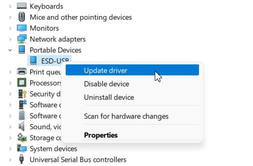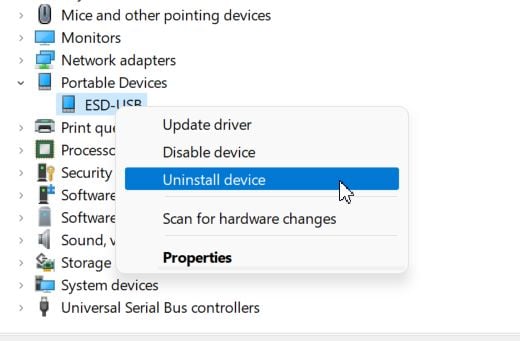 Tekan Windows + R untuk membuka Run. Ketik devmgmt.msc dan tekan Enter untuk membuka Device Manager.Luaskan Perangkat Portabel dan klik kanan pada driver USB.